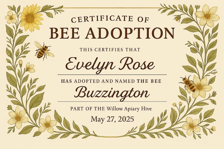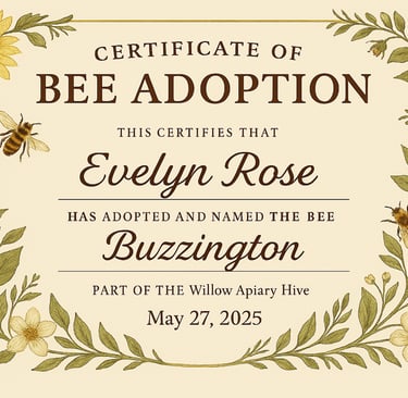 The adoption is symbolic but the impact is real. Your support goes directly toward hive health, beekeeper livelihoods, and bee education. The seasonal updates connect you to the life of your hive and the vital role bees play in our ecosystem, creating a lasting and memorable relationship rather than a one time transaction.
