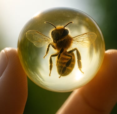 When your bee eventually passes, it is respectfully preserved in epoxy and sent to you - just like the iconic mosquito in Jurassic Park - so you can keep a lasting reminder of the pollinators you helped protect.